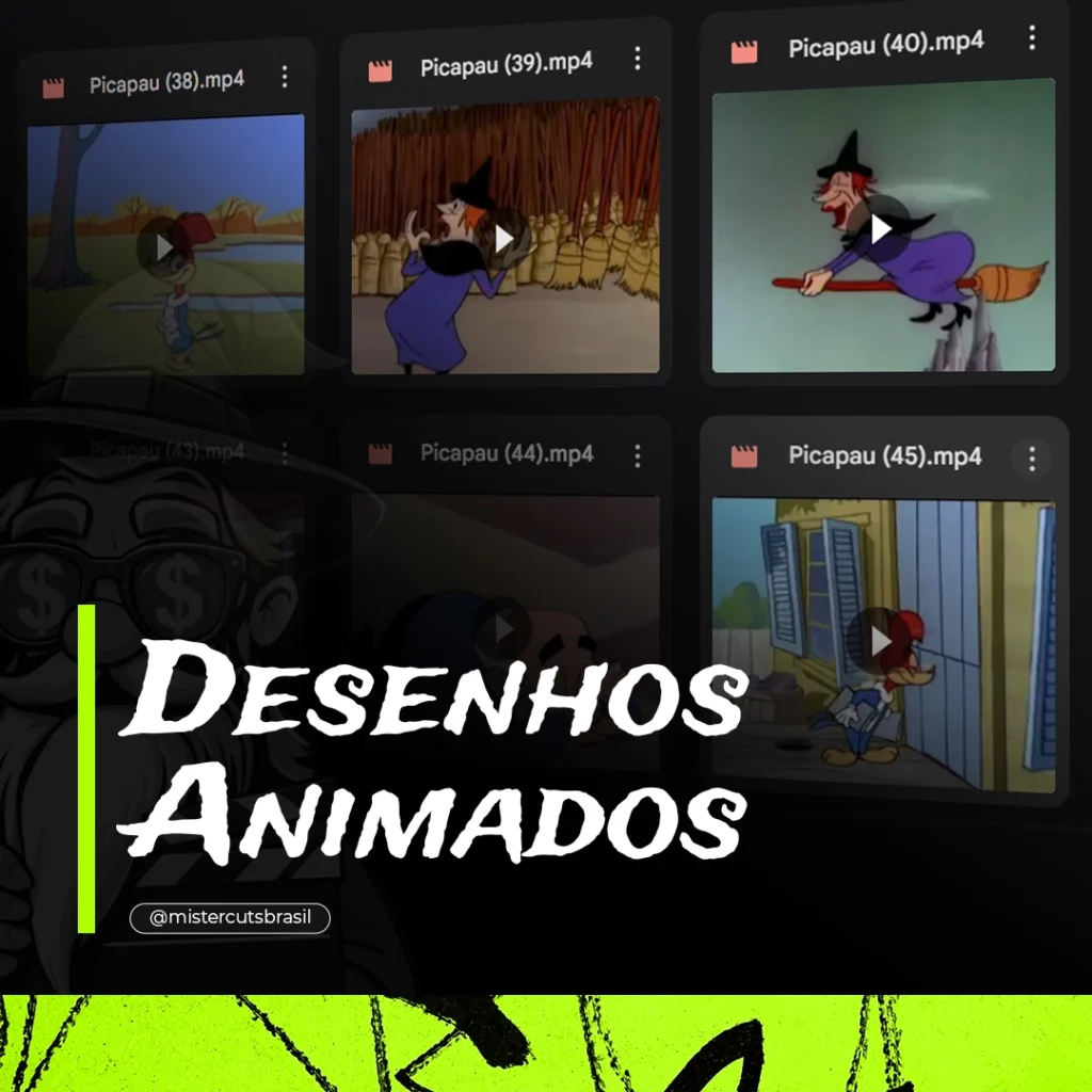 Mais de 300 cortes do Pica-Pau e outros desenhos clássicos, com referências animadas e edições de cenas famosas que geram engajamento e viralizam fácil nas redes sociais.